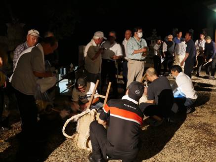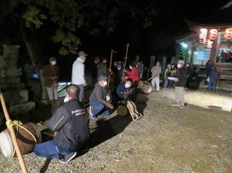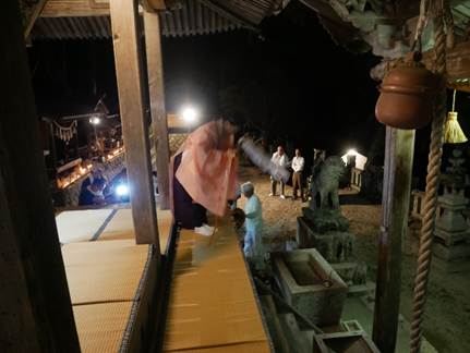 力強くしなやかで神様に愛でられておられるのを感じました。氏子の皆様もそれを見て楽しく過ごされ、日を超えて一時頃になりましたが、氏子全戸の約7割が残って、五穀納を見届けられました。この様子を神様は全て見ておられ、荒神舞をご嘉納下さいました。