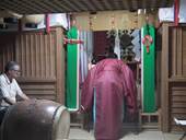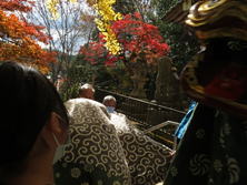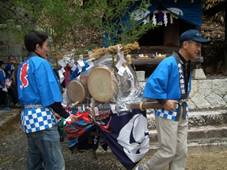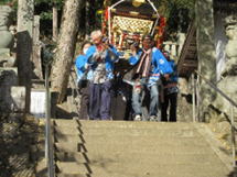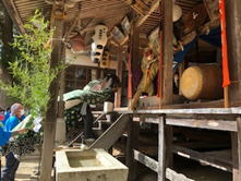 神殿入りは、氏子の皆様の家の神様とともに、鐘や太鼓の音を響かせて上がられました。