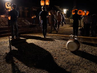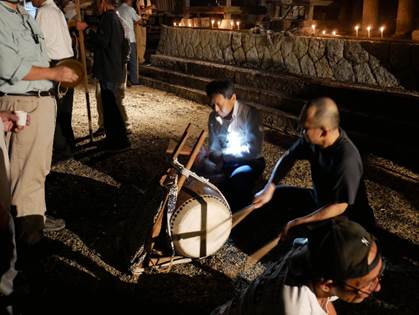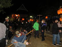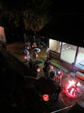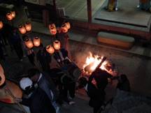 三組の神儀組全てが力強く大きな太鼓・鉦の音を鳴り響かせ、提灯をゆらゆらと神殿入りをされ、境内で打ち上げ、灯は供えられました。