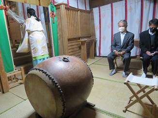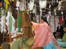 恒例神楽は弓神楽にかえて弓神楽三席奉仕