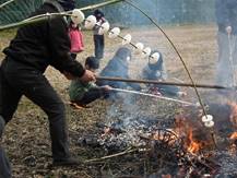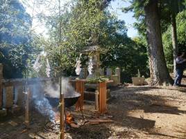 無病息災・家内安全・五穀豊穣・学問上達・交通安全を祈り、町内会が用意された餅・いわし・ウィンナ等を焼き、御神酒いただきました。