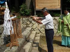 暑い中、力を込めた神殿入りをされ、多くのお参りにより斎行致しました。