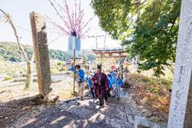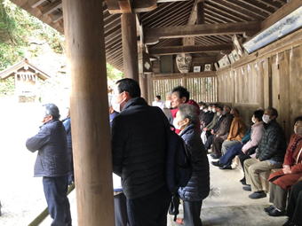 平成31年より新型コロナ感染症もあり、延期が続き、令和6年の今年、久々の合同初詣です。31名という多数の参加でした。幹事は井永八幡神社総代の方々です。吉備津神社への正式参拝では、宮司様が何度も延期し参ったことについて、感謝を述べて下さいました。鳴釜神事へ向かう途中、禰宜様が(大学卒業後勤めておられ30年ぐらいだそうです。行縢の総代長様のご親戚だそうです。始め、この神社に決めた時は知らずに決めました。)神社の建物などなど、とても詳しく丁寧に話して下さいました。鳴釜神事では、各社の名を挙げて祝詞奏上してくださいました。お釜の音は、各自判断するとの事。私は耳鳴りがあり、低い音が聞こえず、とてもとても残念でしたが、聞こえた方には低い音が長く続き、こもをかけられるまで続いたそうです。きっと良い方向に進むということなのでしょう。美味しい食事を頂き、買い物もしっかりして、充実した一日でした。