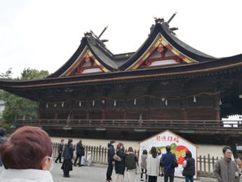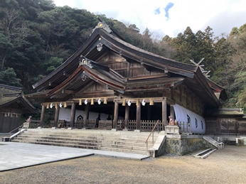 行きは雪や雨が降っていましたが、神社に着いてからは止み、穏やかに参拝できました。祝詞では、四社の名を挙げて、今後の幸せを祈願してくださいました。宮司様のお話もありました。音楽の神様がおられ、楽器をたくさん奉納されるそうです。その中の大太鼓(直径2メートル近い)を毎朝打って拝まれているそうです。