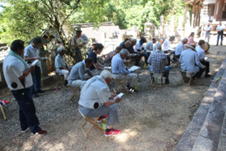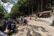 2日午前中は大雨が降ったり止んだりしていましたが、何と午後はぴたりと止みました。足元は山水が流れたていましたが、当番さん総代さんによる準備は例年通りのものが仕上がりました。