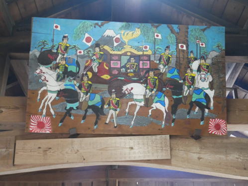 この度傷んでいた絵馬を亀川美装株式会社亀川伸二様に依頼して修復して頂きました。美しく仕上がって、拝殿に掛けられました。