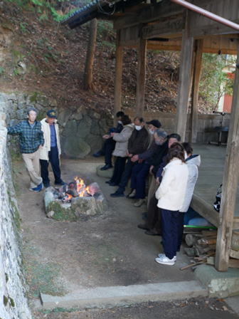 お餅を焼き、女性会のぜんざいといつも提供して下さる猪肉の炒め物を美味しくいただきました。