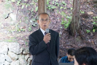 名誉宮司様がお話をして下さいました。神社の由緒、神社は人が参られるようにしなければならないと、神社建築の工夫や神社での行事について話して下さいました。